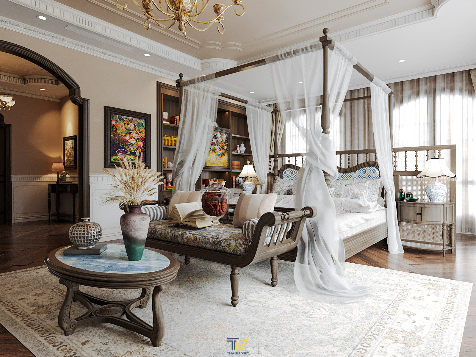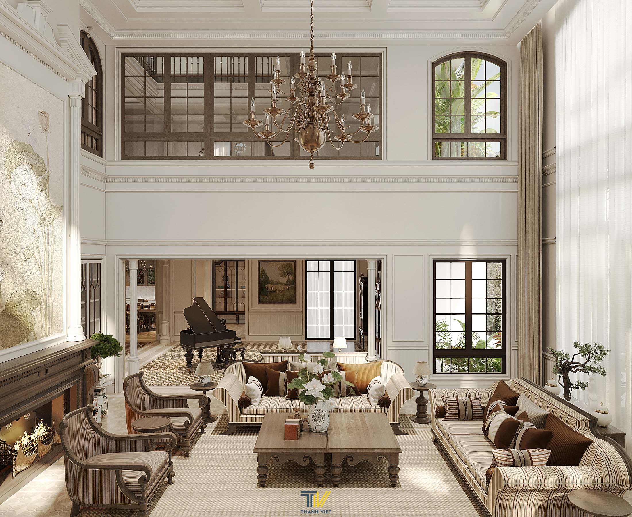 Hiểu rõ mong muốn của gia chủ về phong cách, lối sống và gu thẩm mỹ, Thanh Viet Interior đã có những giải pháp độc đáo và mới lạ hơn cho nội thất biệt thự. Không chỉ đơn thuần với Indochine cổ điển, chúng tôi còn thả vào đó một chút tinh thần Âu Mỹ cho những không gian chung, giúp làm tăng sự nhẹ nhàng, thanh thoát cho không gian sống.