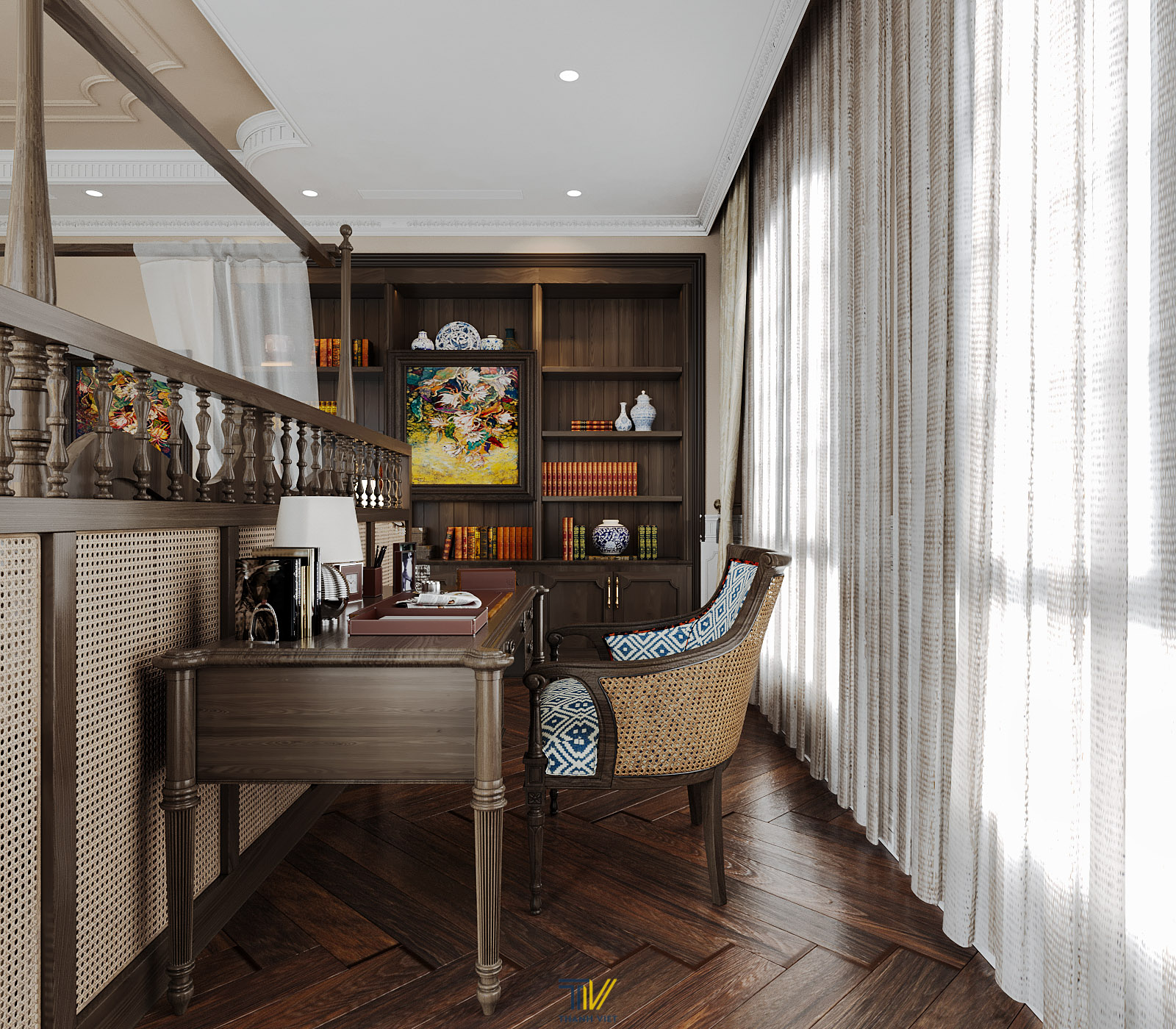 Bạn có cảm nhận như thế nào về căn biệt thự mang phong cách Indochine mà Thanh Viet Interior vừa thực hiện cho khách hàng tại Bắc Giang? Với thế mạnh về phong cách Âu Mỹ, chúng tôi cũng đã đưa vào biệt thự những màu sắc mới lạ hơn, giảm bớt sự nặng nề của Indochine, đem đến cảm giác thư thái, nhẹ nhàng cho gia chủ mỗi khi bước vào nhà.