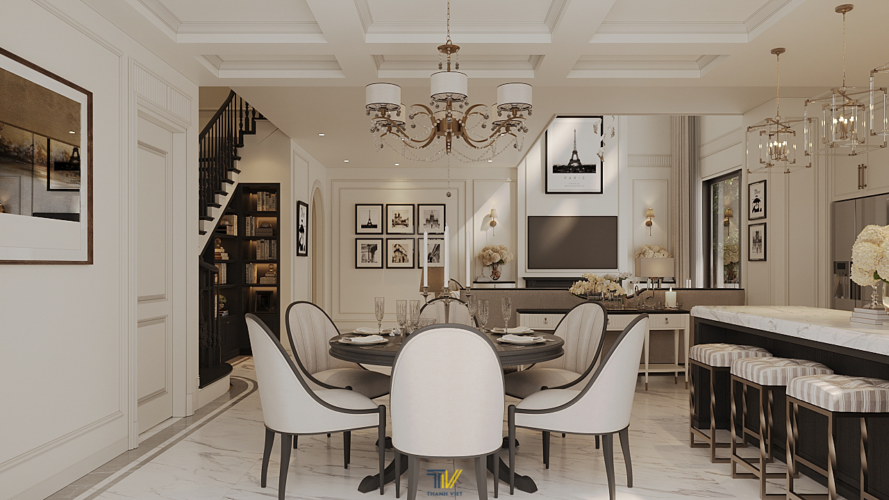 Modern Classic là “đề bài” thú vị mà gia chủ gửi cho Thanh Viet Interior. Tại Aeris House, phong cách này là sự dung hòa giữa nét cổ điển châu Âu và tinh thần hiện đại thanh lịch.