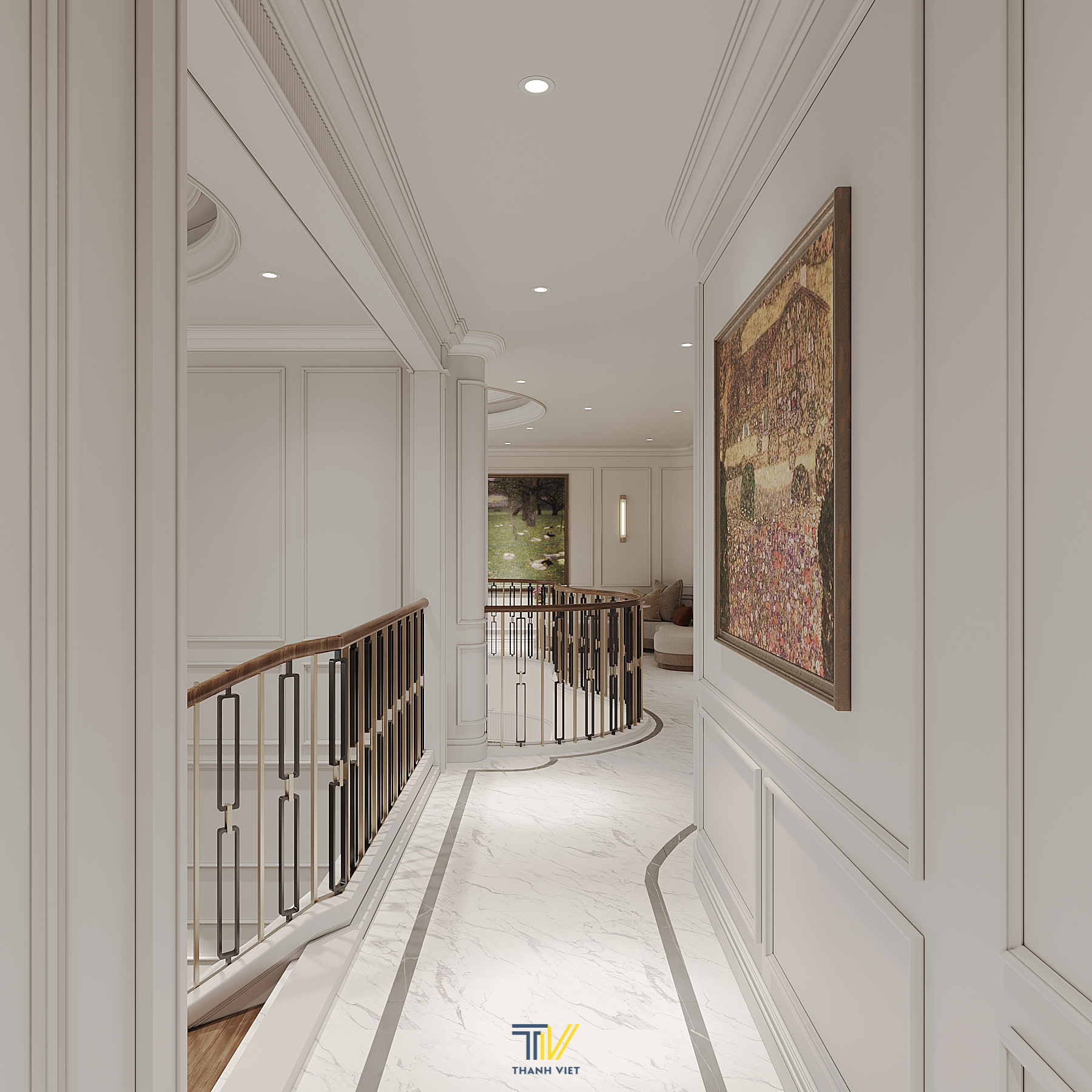 Với phong cách Modern Classic một chiếc thang thông thừa có lẽ quá đơn điệu. Vì vậy, KTS của Thanh Viet Interior đã thiết kế một chiếc thang xoắn thanh lịch, đặt tại vị trí phía ban công để lấy ánh sáng trực tiếp và tạo điểm nhấn đặc biệt cho căn hộ.