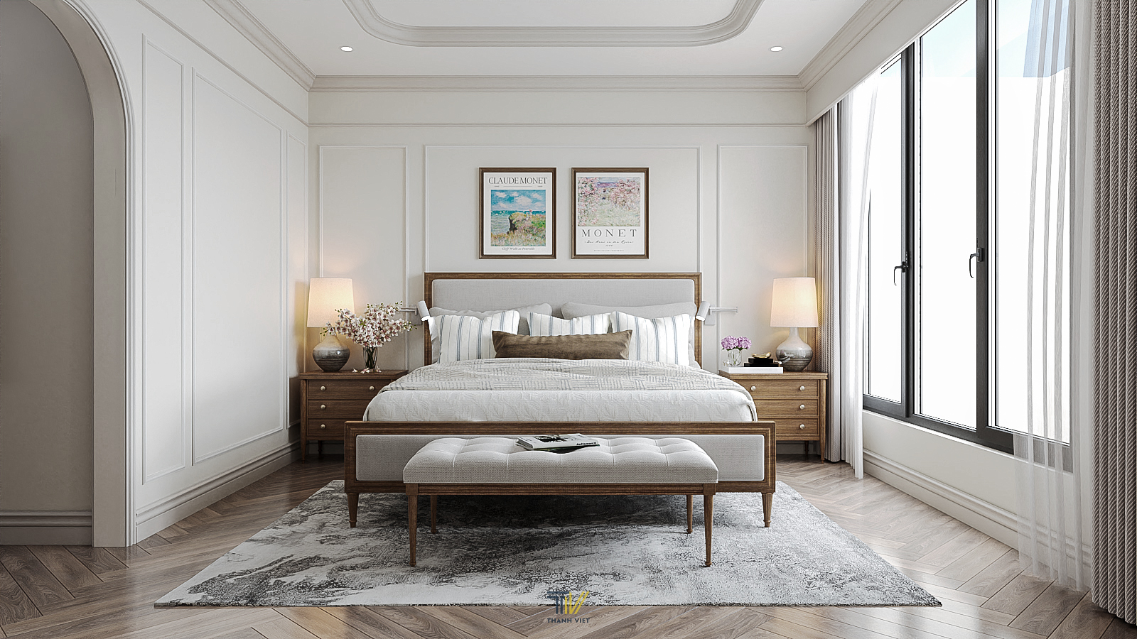 Với những không gian riêng tư, KTS của Thanh Viet Interior luôn ưu tiên việc làm nổi bật tính cá nhân của thành viên sở hữu. Với phòng master cho con gái chủ nhà, những gam màu trung tính như kem, nâu, be vẫn là sự lựa chọn đầu tiên.